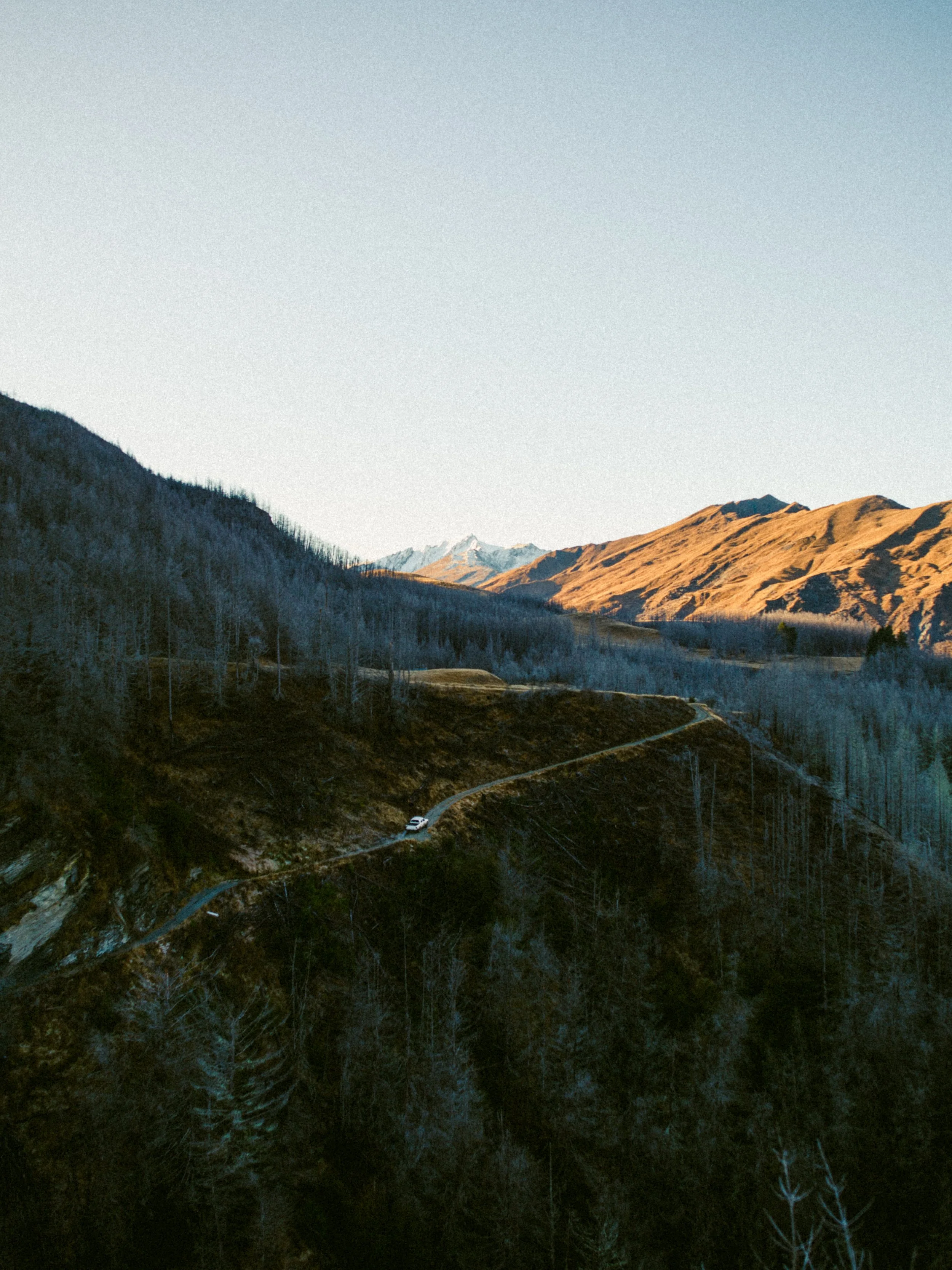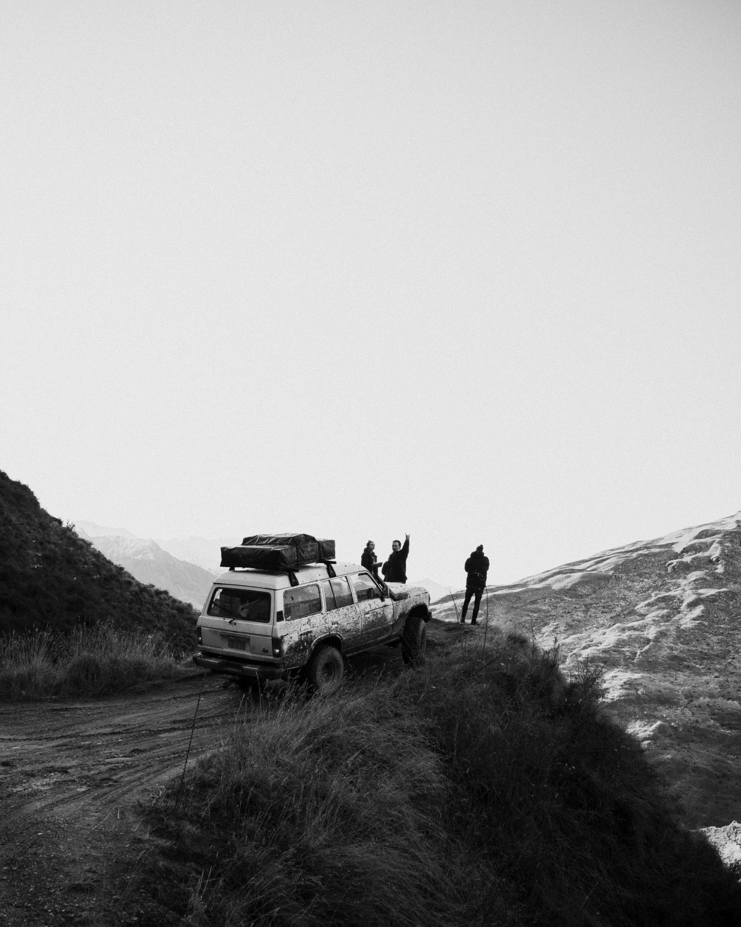 We packed up the tent and headed down into Queenstown to meet Lachie. After getting a coffee, filling up the trucks & checking the forecast, we headed to the start of the road. We were met with a narrow winding road leading along massive cliffs. Due to the rain the night before, the road was turned into a gravel milkshake which didn’t help calm anyones nerves